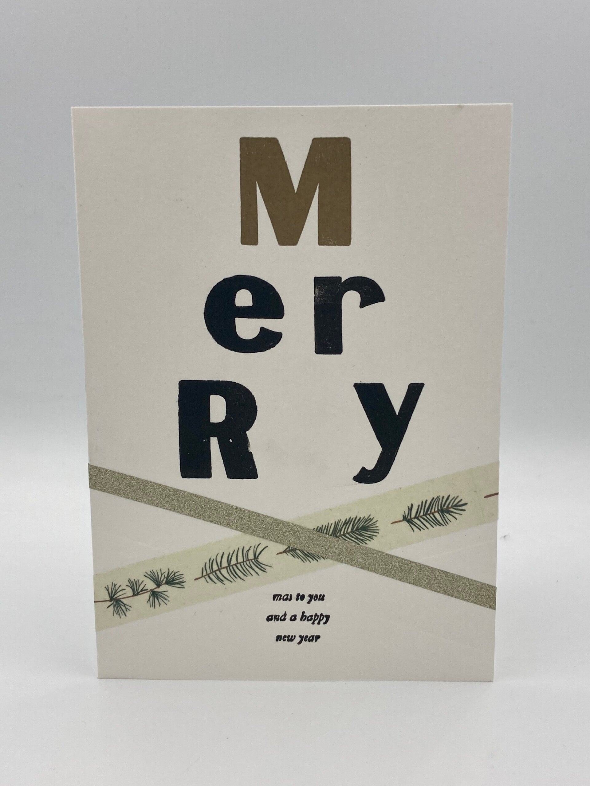 Goudkleurige en zwarte letterdruk van loden en houten letters, afgewerkt met washi tape
