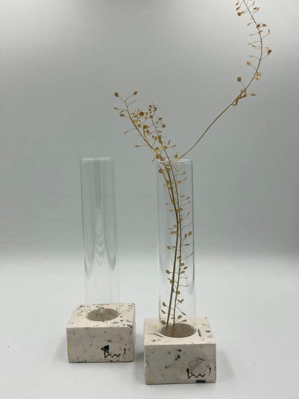 Terrazzo standaard met vaasje (excl.bloemen), afmeting 4,5x4,5x2cm